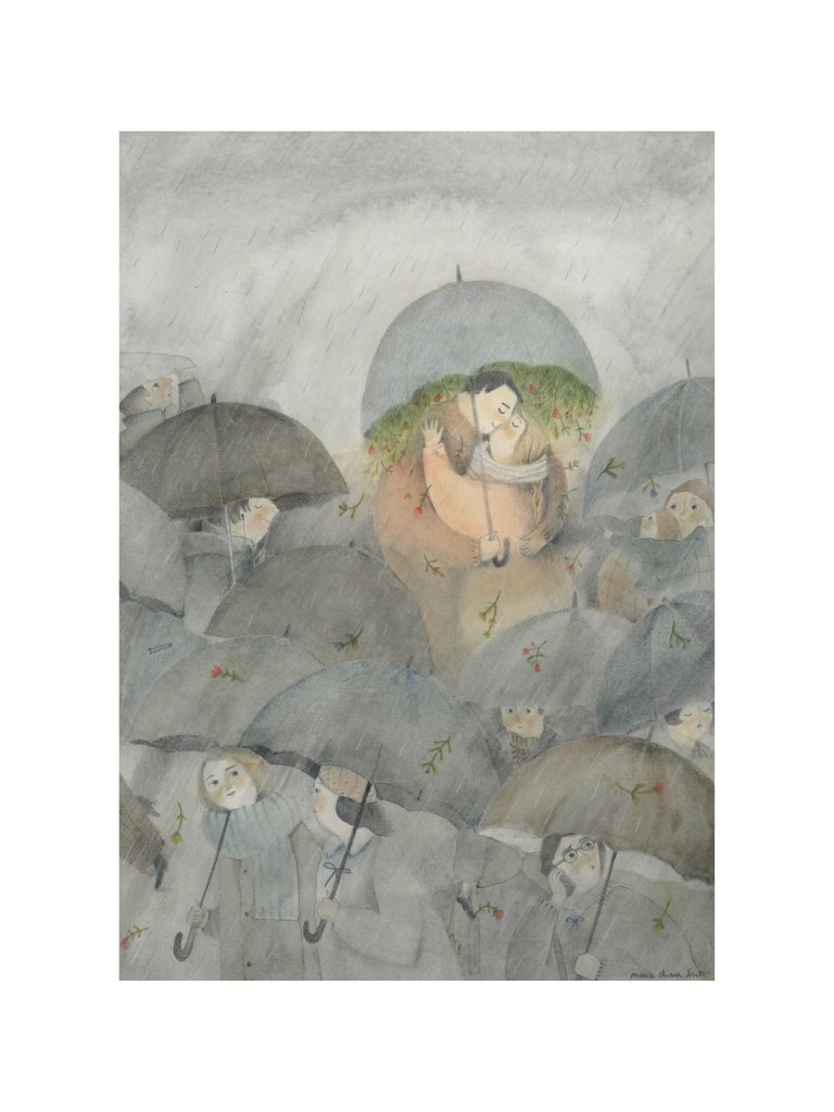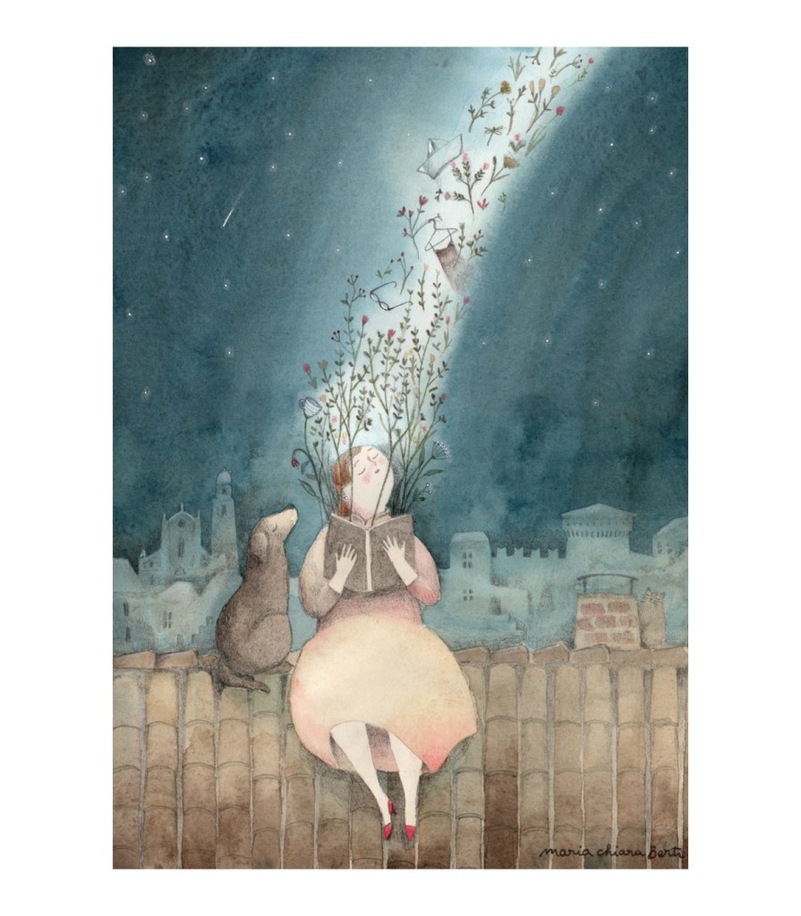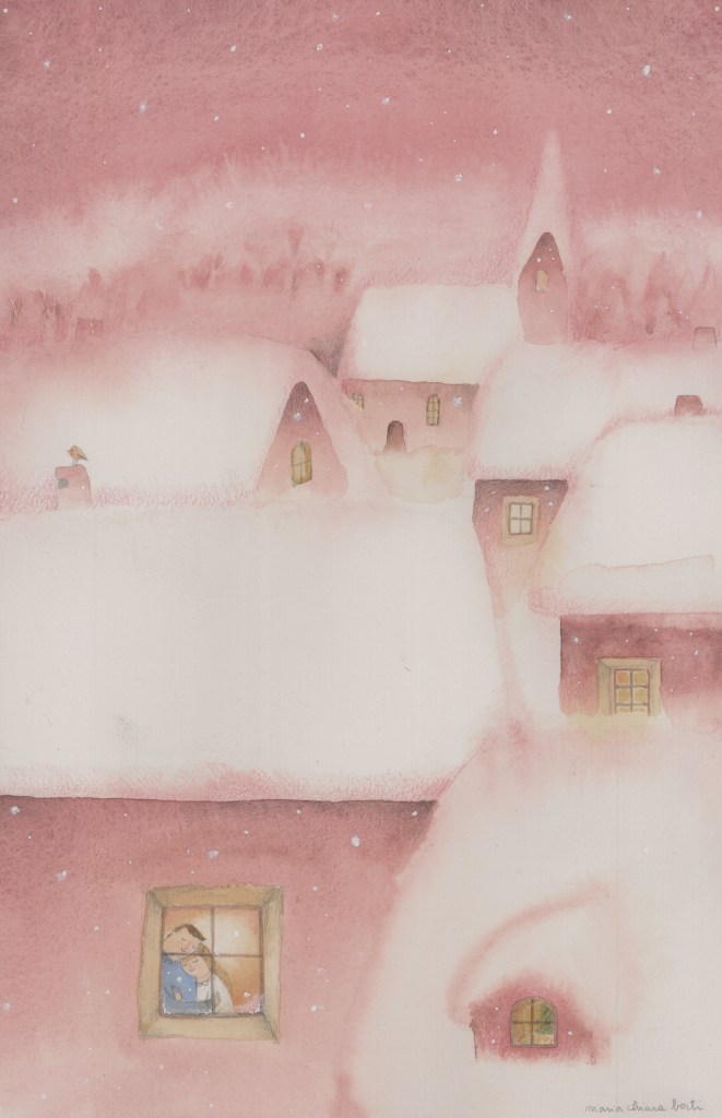 Illustrazioni Ecco il mio mondo immaginato, una realtà fatta di momenti di intimità, di sogni, di piccole gioie quotidiane. Cieli notturni, stelle, alberi, case, personaggi sognanti e morbidi. Matita e acquerelli su carta cotone Zaira Ricordi Tetti rosa Invito a cena Sotto le coperte Ombrello Rosa Ti ho trovato Nostalgia La sala d’aspetto Danza nel cielo Condividi: Condividi su X (Si apre in una nuova finestra) X Condividi su Facebook (Si apre in una nuova finestra) Facebook Mi piace Caricamento...